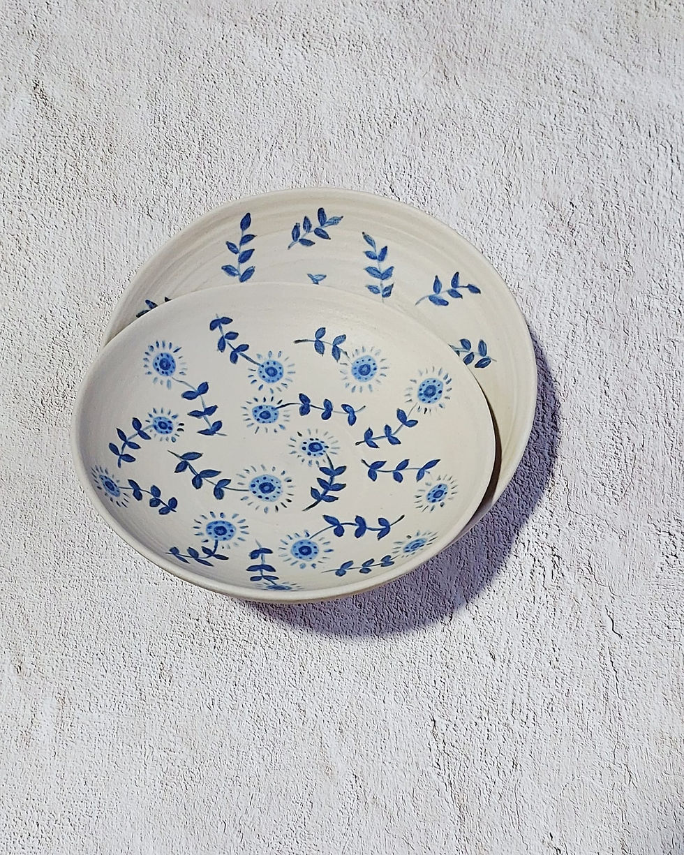 Deep Ceramic Plate – Blue Botanical Pattern
